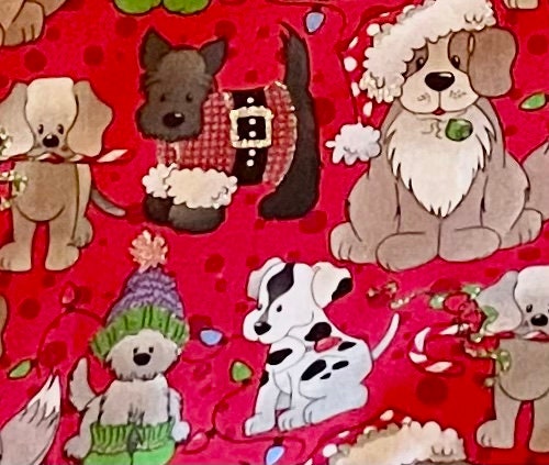 This is the cutest Christmas Blanket ever and you won’t find it anywhere else! Adorable popular dog dressed for Christmas pop against vibrant red cotton! The reverse side is a warm deep solid red flannel. Perfect size to decorate any room or bring joy to any dog lover (or dog :). You’ll want to keep it out year round- promise! Handmade by sisters Sue Grandi (age 85) and Nancy Johnson (age 76). Free shipping and only 2 in stock!