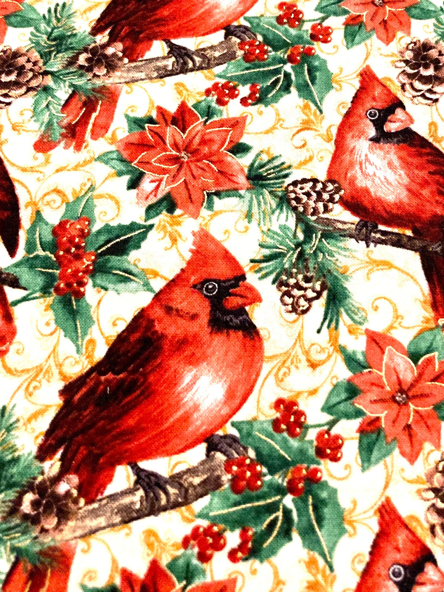 Beautiful Christmas Cardinal and poinsettia reversible hand sewn blanket