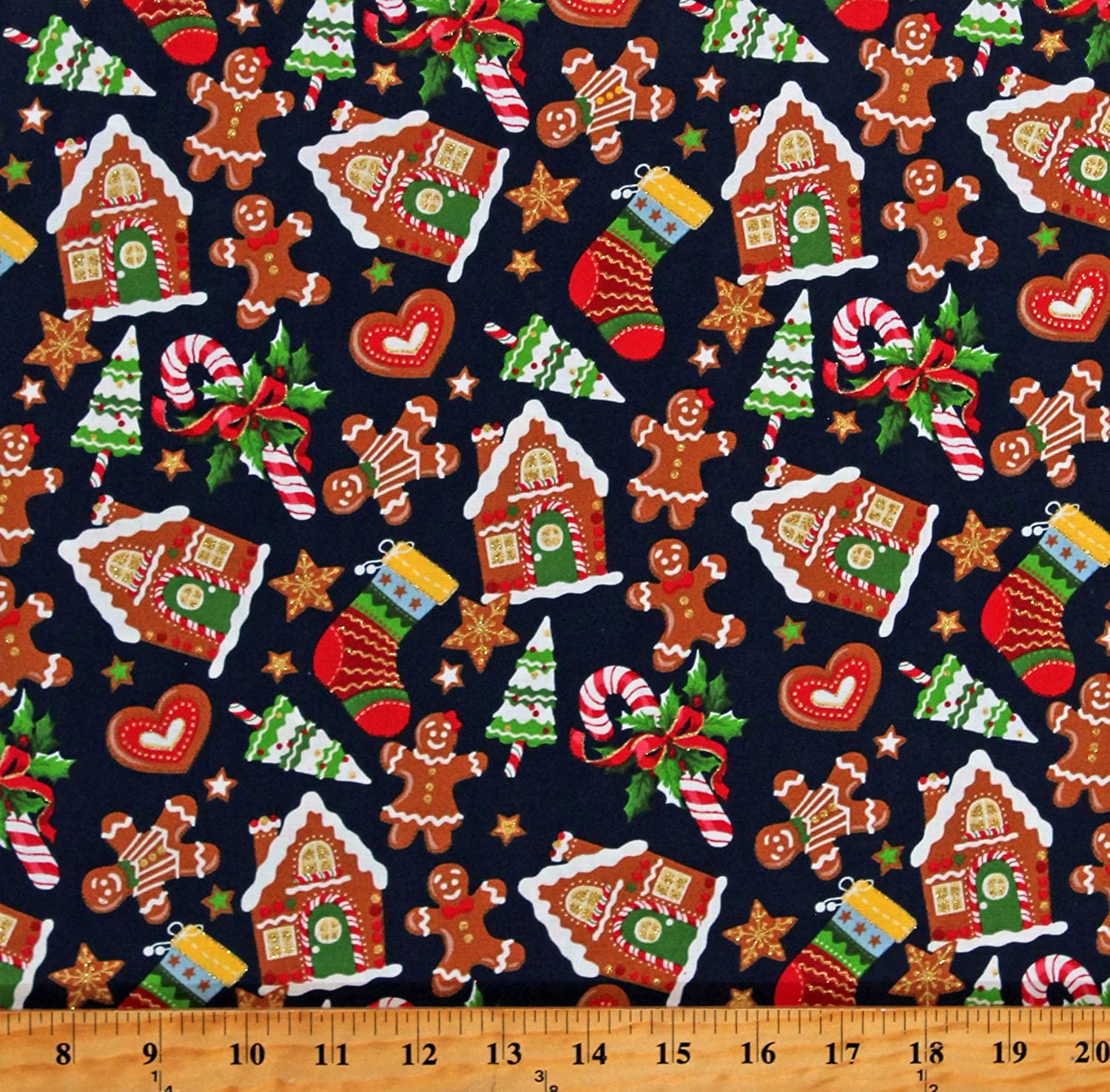 This cheerful Gingerbread blanket features colorful Houses, Gingerbread Boys and Girls, Candy Canes, Christmas Trees, Stars and more that pop against rich black cotton. Then the reverse side is a soft and warm solid flannel. Handmade by Sisters Sue Grandi and Nancy Johnson. FREE SHIPPING and LIMITED stock!