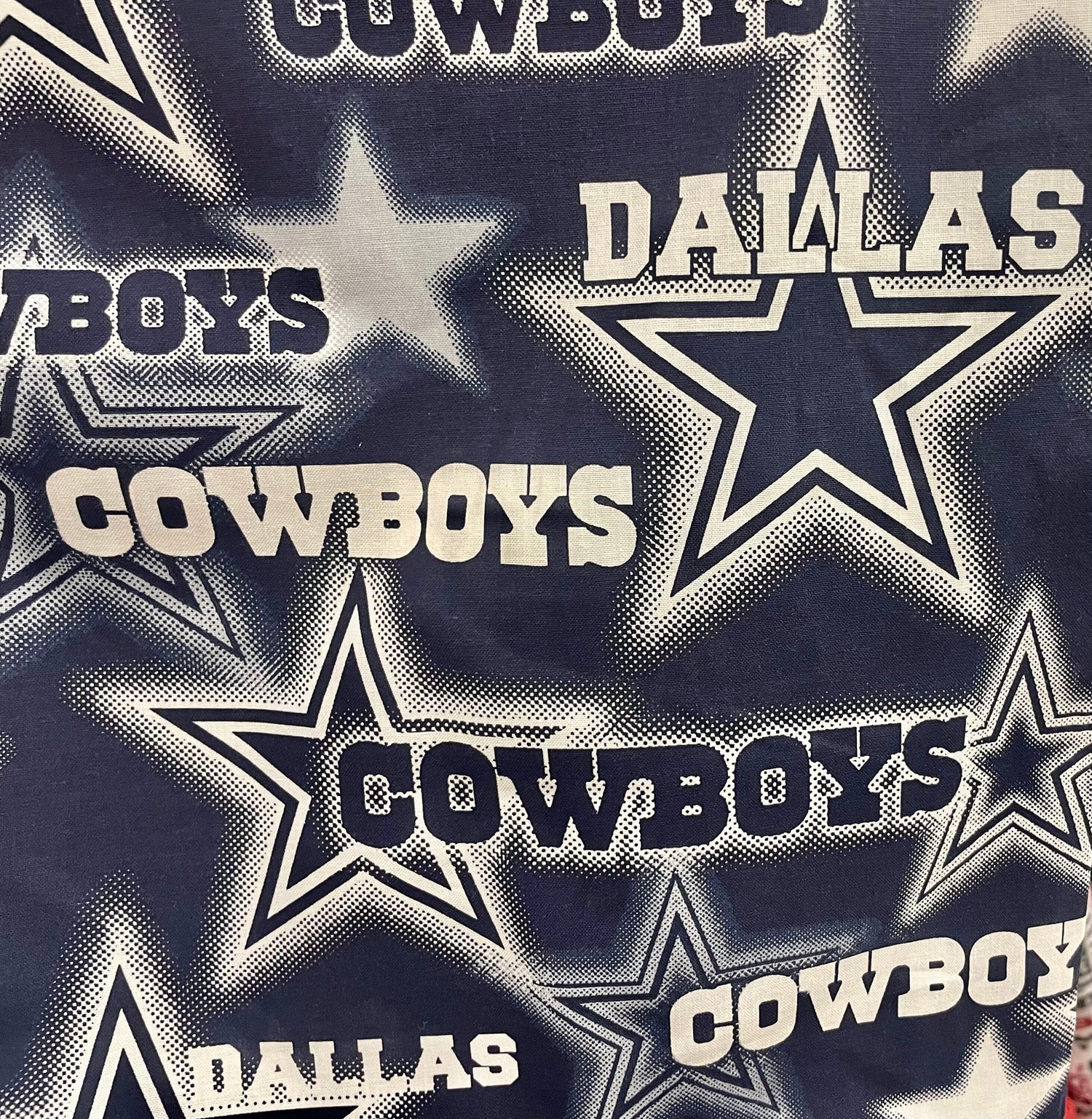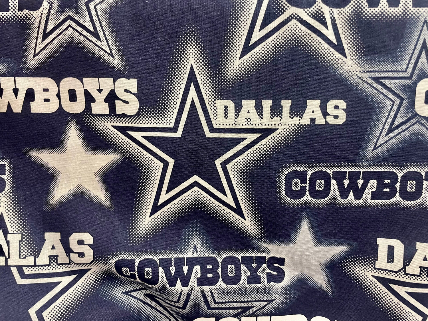 The stars and team look 3D on this designer navy cotton! Then the reverse side is soft and warm Navy flannel. Perfect size for tailgating, a media room or any room to show your love for Americas team (and I live in Dallas). Handmade by sisters Sue Grandi and Nancy Johnson. Free shipping, machine washable and 2 in stock!