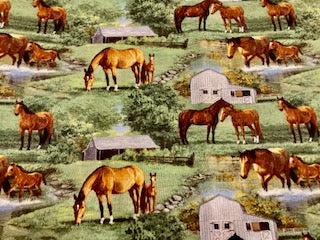 This is the best horse blanket and gift as the rich colorful cotton features beautifully drawn horses with their colts on farms. Then the reverse side is a soft and warm solid flannel. At 48" wide by 40" long it's perfect size for any home, barn, lap or to bring a smile to someone who loves horses! Handmade by Sisters Sewing Kindness Sue and Nancy. FREE SHIPPING, machine washable and only 3 in stock.