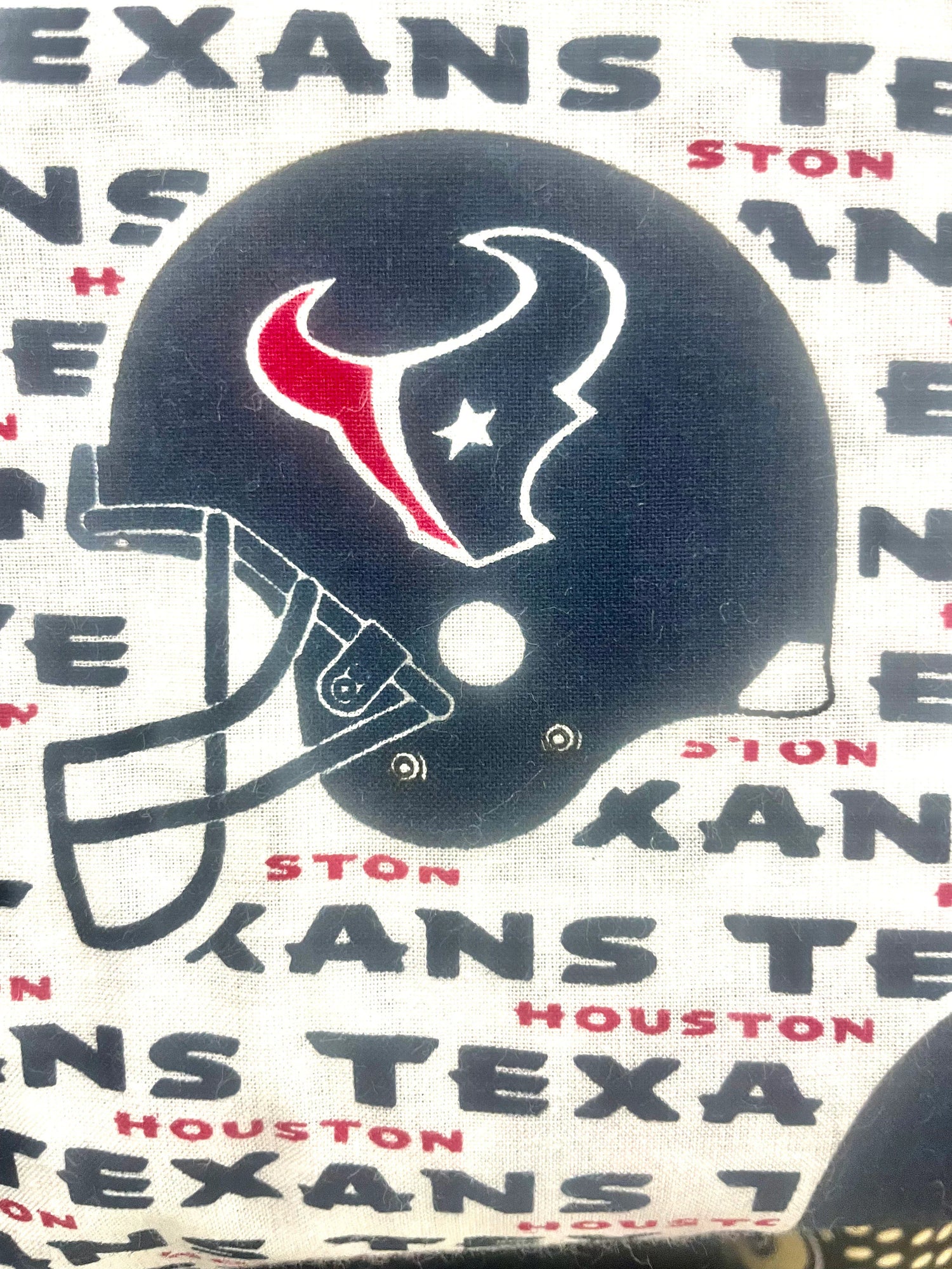 This ultimate Houston Texans blanket is the perfect for tailgating, a fan’s gift or decorating any room with your favorite team! Then the other side is soft warm soood navy flannel. At 48” by 38” it’s perfect size! Handmade by sisters Sue and Nancy. Free shipping and 2 in stock!