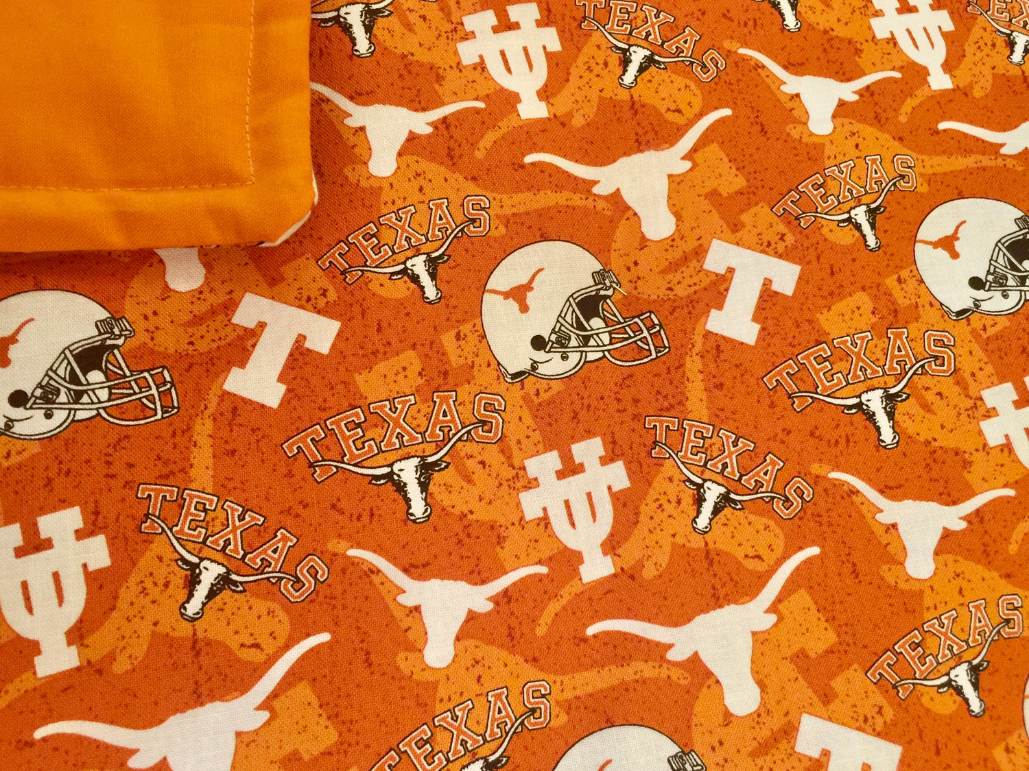 This handmade Hook Em’ Horns UT Austin blanket is the perfect tailgating, dorm, media room and football fan “must have.” High quality cotton, perfect dimensions and made my Sisters Seeing Kindness Sue Grandi and Nancy Johnson who sow kindness by their sewing :)