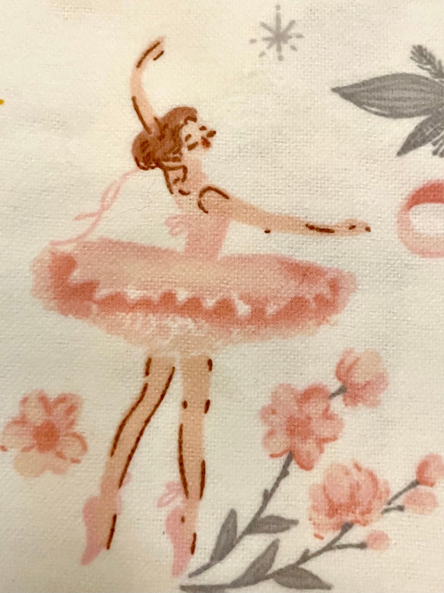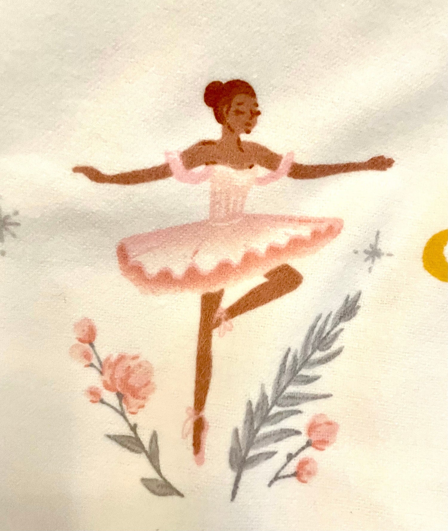 This beautiful blanket features ballerinas, pink ribbons, “I Love Dance” “Shine Bright” and more. Then the reverse side is positive affirmations about the beauty of dance and more pink ribbons. Perfect for any gift, bed, bedroom, studio and more. Handmade by sister Sue Grandi (age 86 and still dances) and Nancy johnson. Free shipping! 3 in stock and a best seller!